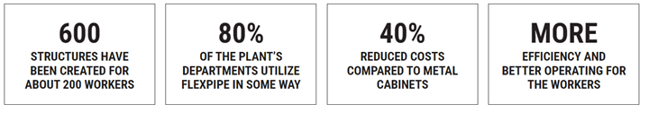 Over 600 workstations were assembled to help over 200 production employees. Currently, over 80 percent of the departments within this Safran location rely upon Flexipe in some form or another. Not only were their workstations more efficient, but they reduced the costs of their workstations by 40 percent.