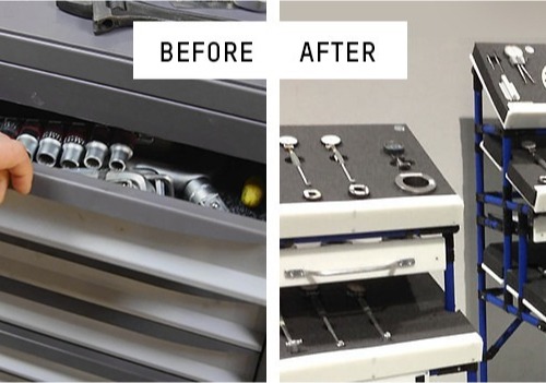 A more serious issue was how these workstations were organized and structured. It was common for critical tools and consumables to go missing at the most inopportune times. Assembly times were affected, and the movement and transit times of semi-finished parts and materials were simply too high.