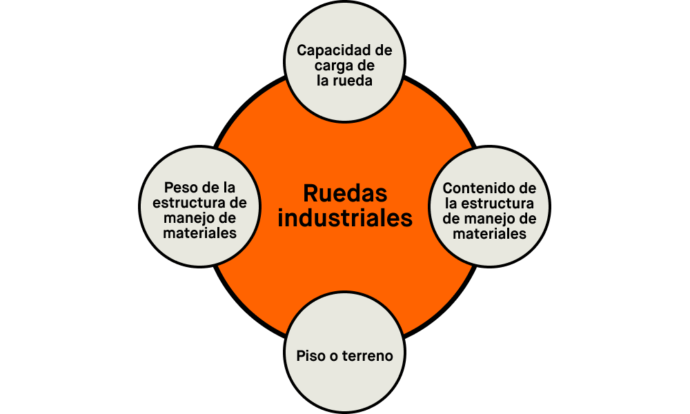Finalmente, determinar el tipo de piso o terreno por el que la rueda se desplazará, así como el peso total que el carrito de manejo de materiales necesita soportar, son otras consideraciones clave.
